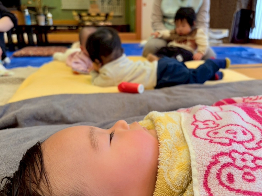 赤ちゃんの声がこだまする、お寺でした