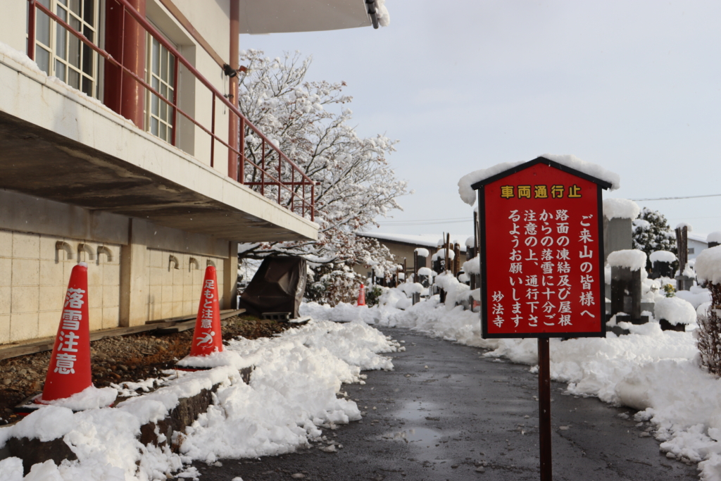 本堂屋根からの落雪にご注意下さい